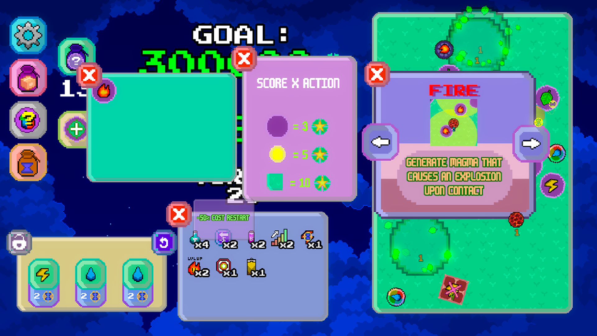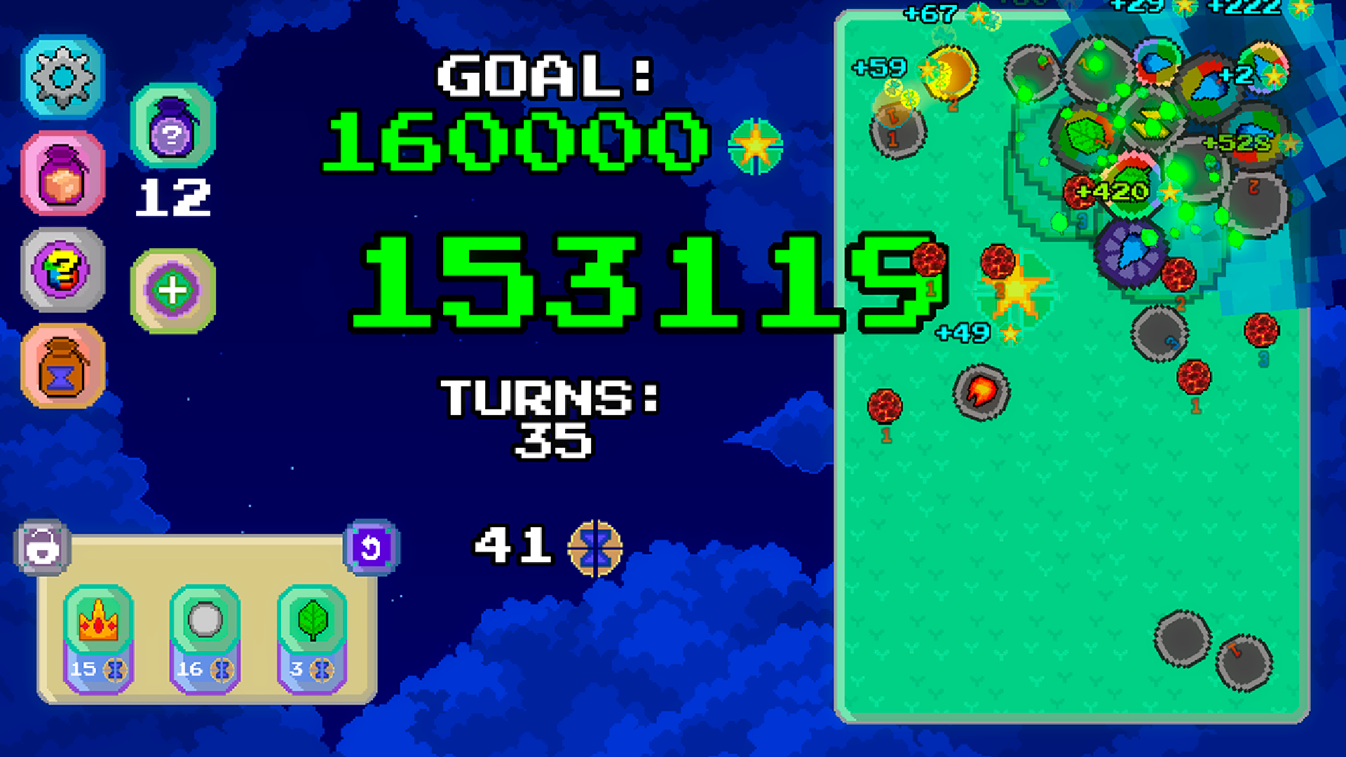 To keep the gameplay fresh and exciting, tokens also feature unique abilities shown in the background. Also there are passive abilities to upgrade your elements, making them longer, bigger, stronger... And for providing general buffs like reducing shop prices, granting extra turns, boosting specific stats...